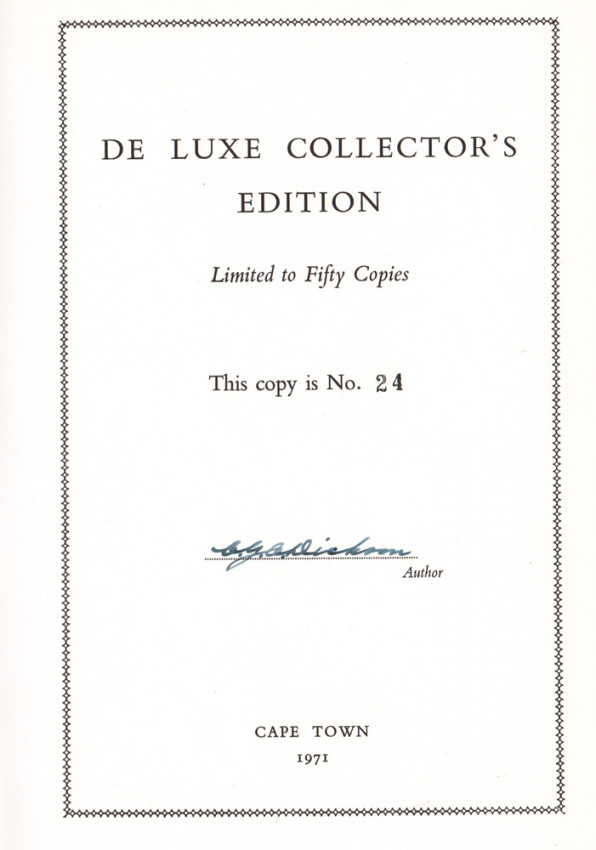 The limitation reads: De Luxe Collector's Edition limited to fifty copies. This copy is no.24, signed by Dickson.