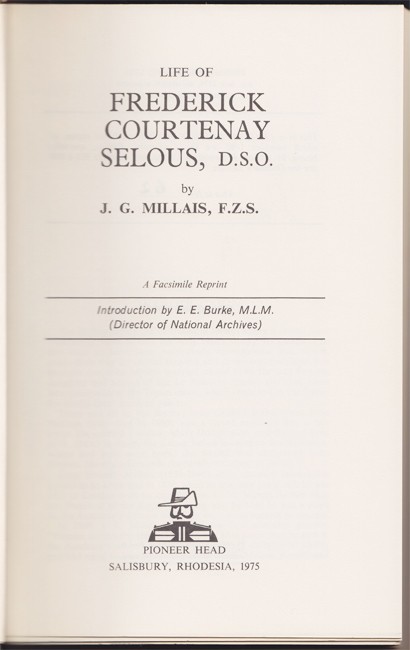 De Luxe Edition, facsimile reprint: 387 pages, frontispiece portrait, 15 illustrations, quarter green morocco gilt, orange title label on the spine, green cloth sides, top edge gilt, contained in a green cloth covered slip case, with a facsimile of a letter from Selous to Millais loosely inserted, a very good copy.