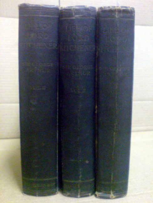 Book condition: All books have general wear and rubbing to the boards. Head and heel of the spine and corners of the boards are bumped. Some bumping to the edges. Spines are sunned. Spines are slightly cocked. Some light flaying to the head and heels of the spines and corners of the boards. Edges are dirty and worn. Pages slightly darkening towards the edges. All books have offsetting and foxing from the front paste downs to the title pages. All books have a water stain to the frontispiece next to the heel of the spine. Interior hinges slightly cracked but the books are still very much intact. Vol I has a picture of Lord Kitchener pasted to the front paste down. Newspaper clippings and a receipt pasted to the rear free end papers. Names and date to the front free end paper. Vol II has library sticker to the front paste down wrapping around to the front board. Name and date to the ffep. Picture of Lord Kitchener pasted to the rear paste down. Vol III has name and date to the ffep.