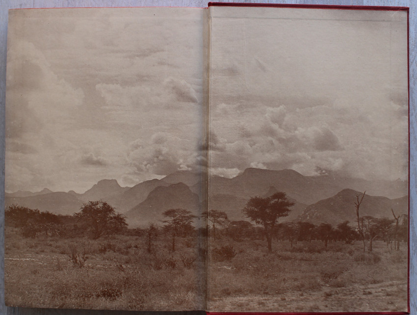First edition: 281 pages, frontispiece, 63 full page photographs, folding map at the rear of the book, photographic mountain scene end papers, uncut page edges, red cloth titled gilt on the upper cover and spine, a very good and clean copy. Signature of a previous owner on title page, dated 1929.