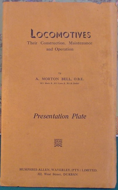 A survey of the more important aspects of the construction, operation and maintenance of locomotives - steam, diesel, electric, internal combustion, fireless, etc. Chapter titles include, The Boiler, Superheating, Cylinders and Valves, Framing and Wheels, Lubrication, Tenders, Brakes, Feed-Water, Repairs, Maintenance, Combustion and Fuel, Running Faults and Failures, Shop Arrangements, The Enginemen, Special Types of Locomotives, Internal Combustion and Electric Types, Modern Types of Locomotives. A total of 433 pages with photographs, illustrations, of which some in colour, charts, diagrams, tables, data, and index, plus five foldouts. Included is a large folding colour \'Presentation Plate\' in wraps, which, however, has separated along some of the folds. Bound in original maroon cloth with lettering stamped in gilt and border blindstamped. Very good, clean condition with only faint occasional foxing, mainly in prelims.