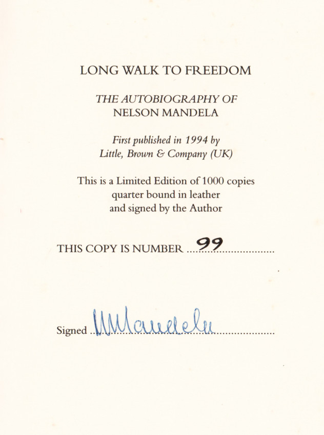 The limitation reads: This is a limited edition of 1000 copies, quarter bound in leather and signed by the author. This copy is number 99