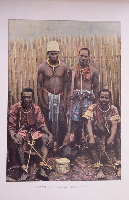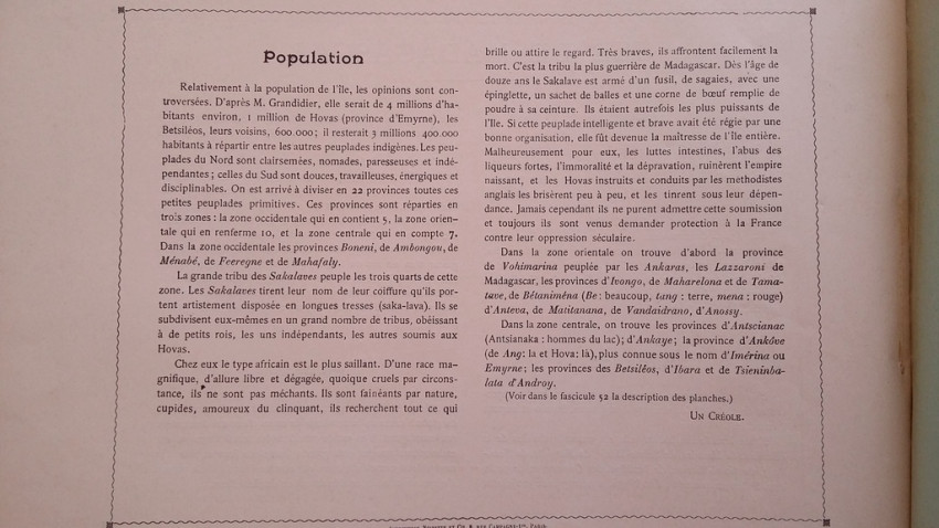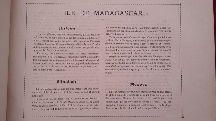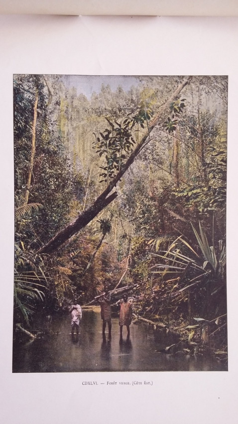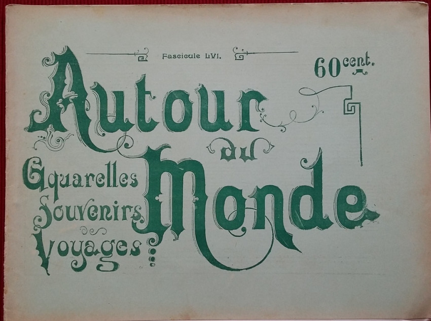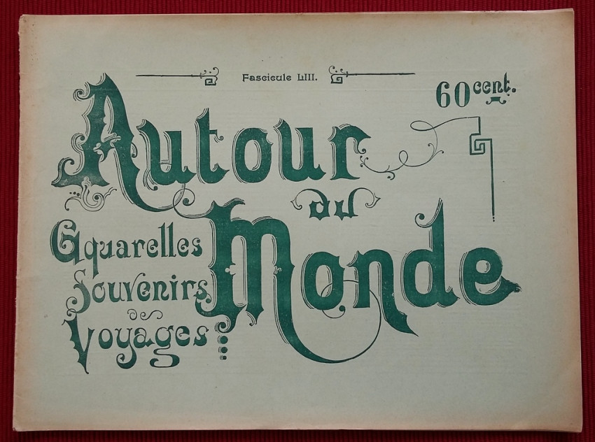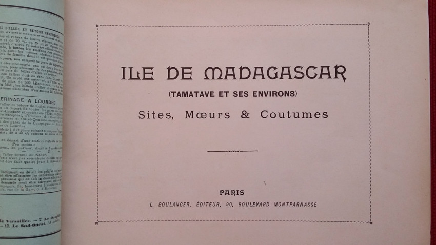 2) "Autour du Monde. Ile de Madagascar (Tamatave et ses Environs): Sites, Moeurs & Coutumes"; Paper wrappers; Collation complete - Title page, 8 photochrome plates (1 doubled) and 2 table pages with detailed explanation of each plate; Text in French; Paperback showing signs of use with partly spine tear, some yellowing/browning and discoloration. Content bright and clean, no foxing throughout. A sound copy.