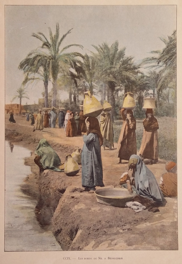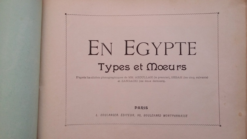 3) "Autour du Monde. En Egypte: Types et Moeurs"; Paper wrappers; Collation complete - Title page, 8 photochrome plates from the photographs of MM. Abdulah, Sebah and Zangacki, and 2 table pages with detailed explanation of each plate; Text in French; Paperback showing signs of use with partly spine tear, some yellowing/browning and discoloration. Content bright and clean, except the first plate which has browning of white margins, no foxing throughout. A sound copy.