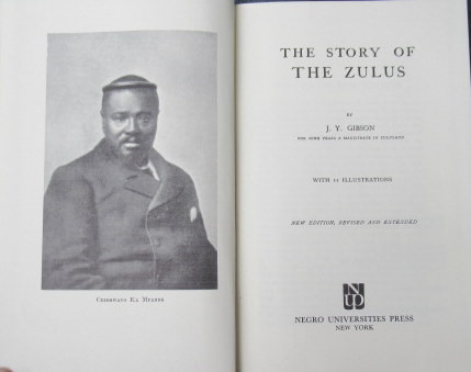 The Story of The Zulus. By J.Y.Gibson. Published by Negro Universities Press, New York, 1970.Reprint. 22.5 X 14.5cm. Mid-Blue boards. Half Title Frontispiece, Title, Preface to New Edition, List of Illustrations, vii plus 338 pages text with supporting illustrations.
