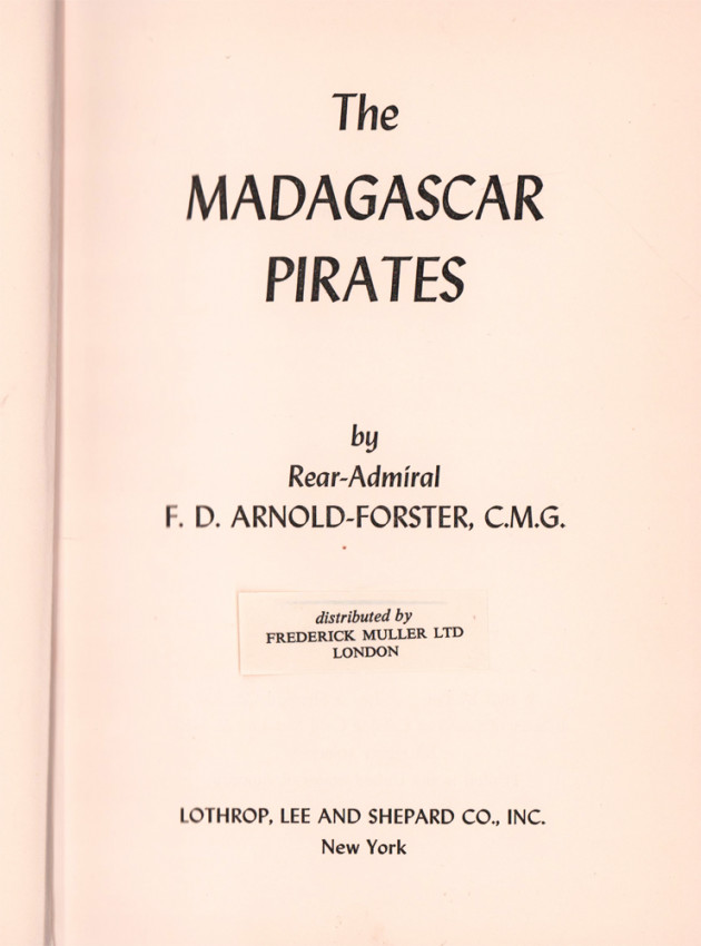 Arnold-Forster (F. D) THE MADAGASCAR PIRATES. 251 pages. New York, Lothrop, Lees and Shepard Co, 1957.