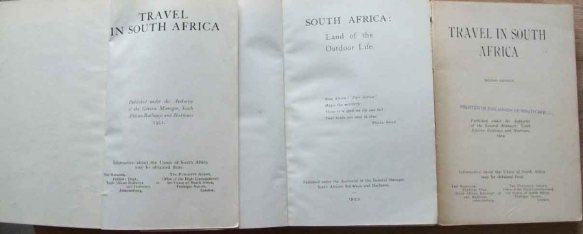 Lot of Three Travel Guides to South Africa, published under the Authority of the General Manager, South African Railways and Harbours 1921/1923 and 1924.