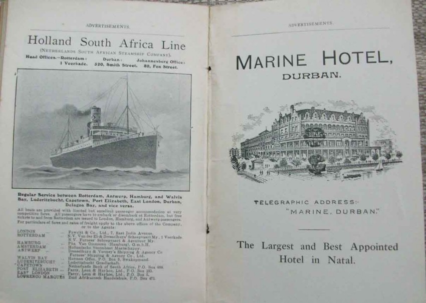 South Africa-Land of Outdoor Life. 1923 Edition.Title. Contents. Map. Preface. viii plus 298 pages text with supporting black and white photographs, with 16 pages plus rear endpaper - advertisements.