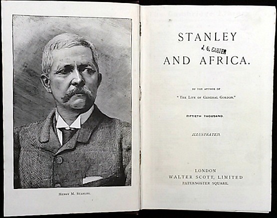 1) Stanley and Africa; viii plus 433pp plus 22pp publisher ads. 191mm x 134mm x 28mm. Original Burgundy cloth with decorative gilt title to spine and gilt edge to top of text-block. 30 woodcut illustrations all present as called for. Award presentation inscription to front free E.P.. Minimal wear to cover extremities. Light random foxing to first few pages. Otherwise very good.