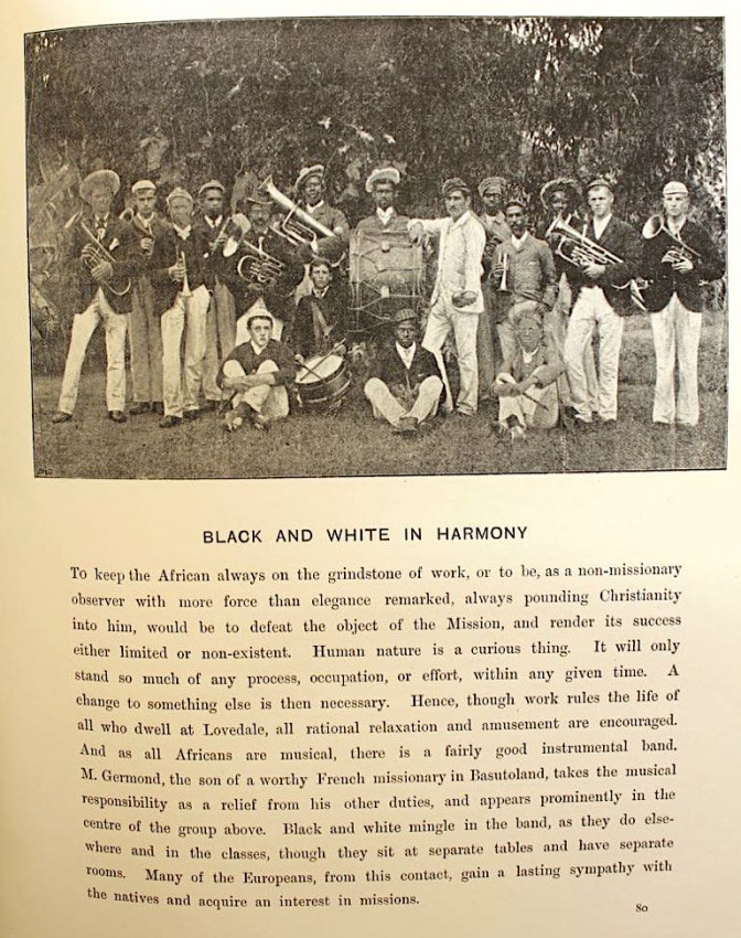 Fifty period photographs of Lovedale Mission Station illustrating the history, set up, aims, and methods of the institution. Each photograph is accompanied with a descriptive text.