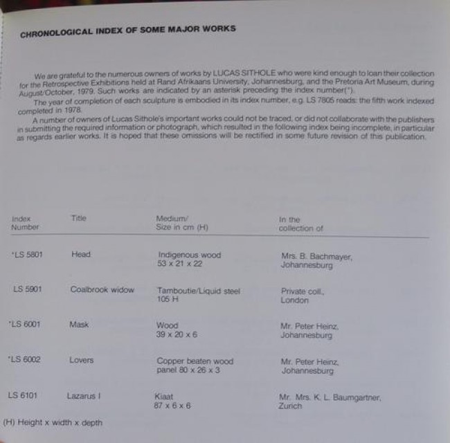 Considering his stature in South African art, there is surprising little reference material on Sithole. This very comprehensive catalogue is the only monograph that I can find on Sithole\'s work. A must have for the collector or admirer of this artist.