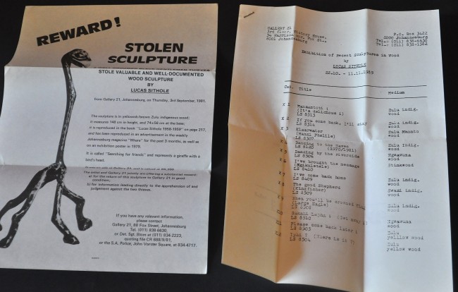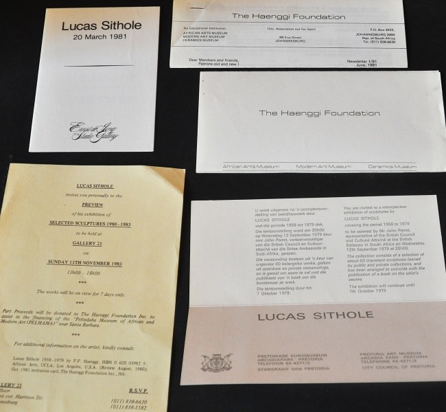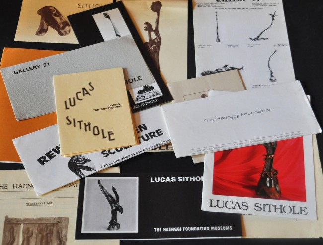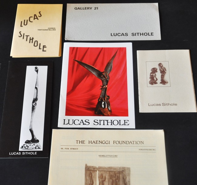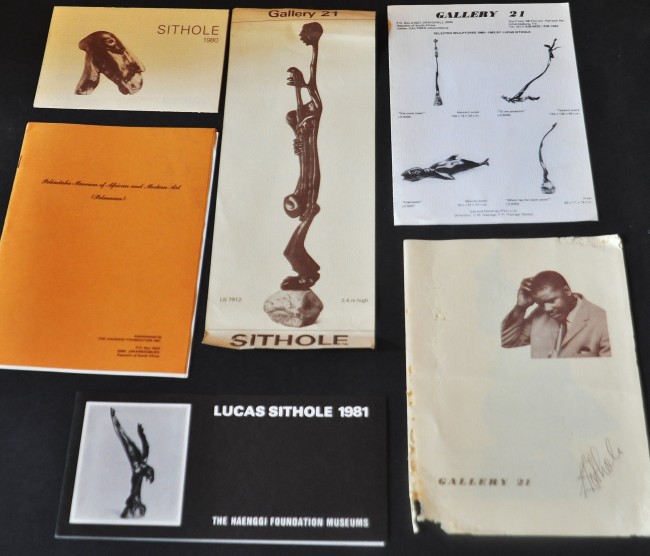 A windfall, a large lot of Lucas Sithole catalogues, gallery invites, and comprehensive lists of this artist's work. There is very little reference available on this important and sought after artist, making this a unique lot. Nineteen items in total, one catalogue has some insect damage on the bottom corner, the rest are all in very good condition. Most dating from the 70 to the end of the 80s. Please see pics for a full list and description.