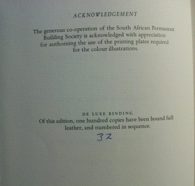 Essentially,the book is a concentrated and factual account of Xhosa tribal life under the following headings:the tribal territory; bodily physique ans accomplishments: clothing and ornaments; children; illness and remedies; languages; magic; religion and moral values; domestic life; status of women; marriage; social life; government; administration of justice; war and peace; death customs; origin; relations with the colonists. This edition the first to appear in English. has been translated by Dr William Fehr; its publication come 153 years after the publication of the German edition. xiv- Foreword 117 pages text with four folding colour plates and other illustrations. Stain to dustcover. Very clean copy.