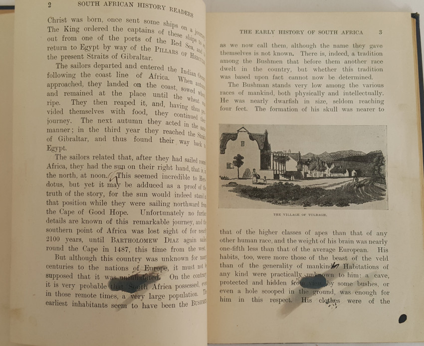 This history book for standard VI gives a broad overview of South African history. Apart from ink blots on pages 2 and 3, it is in very good condition. 226 Pages and many illustrations.
