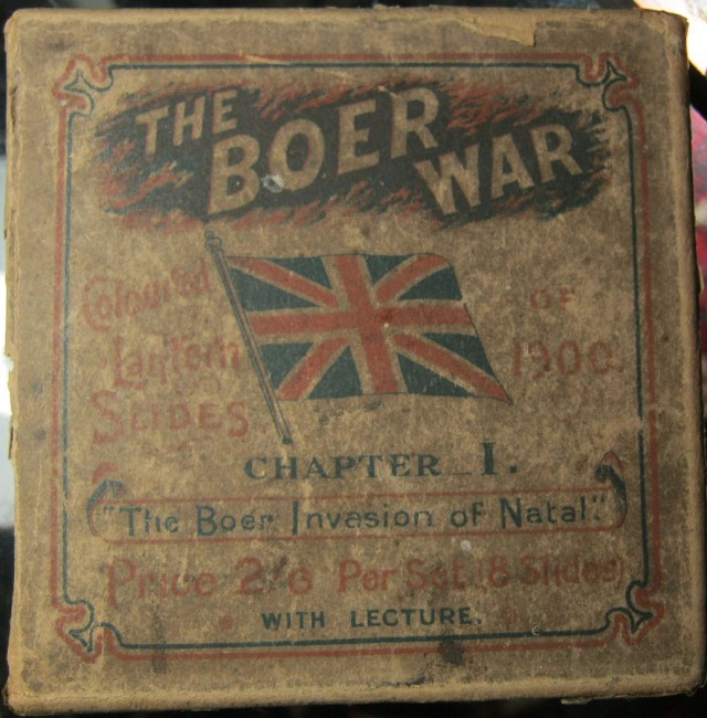 Included in this lot is the original small cardboard box for Chapter 1. “The Boer Invasion of Natal.” Price 2’6 per set, 8 slides …. With Lecture. Originally each chapter would have been contained in a box.