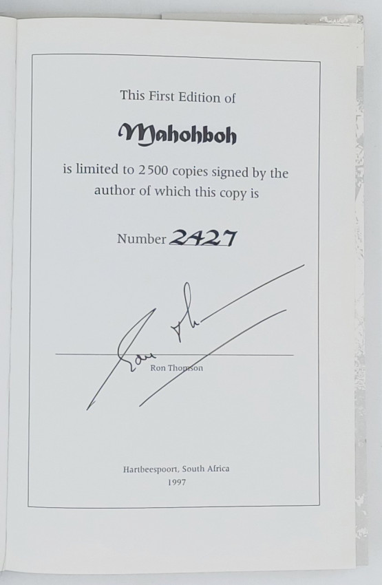 Limitations page reads: The first edition of Mahohboh is limited to 2500 copies signed by the author of which this is copy 2427.