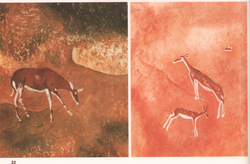 First edition: 95 pages, colour frontispiece, 106 colour reproductions of rock paintings from all parts of Southern Africa, map, quarter brown leather with matching cloth boards, scuff marks on the front end papers, titled gilt on the spine, a very good copy.