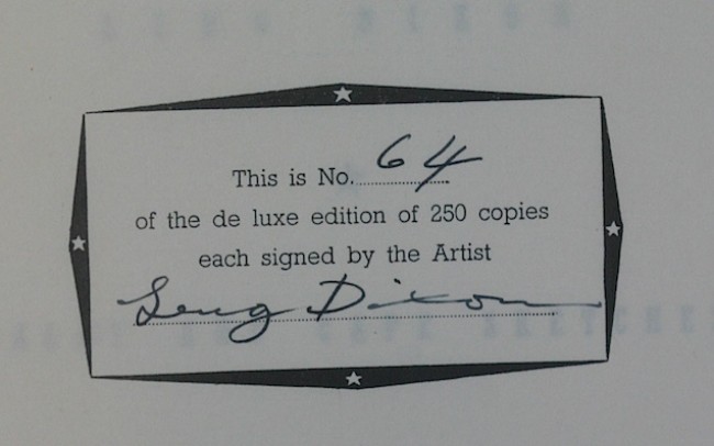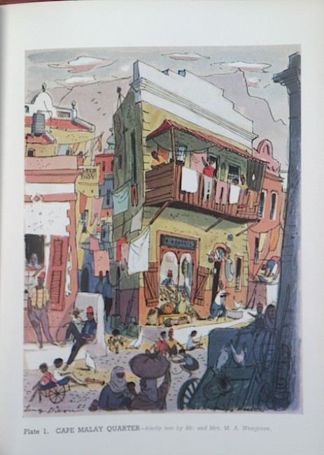 Malay and Cape Sketches by Leng Dixon (1916 - 1968). With an introduction by Ruth Prowse. Limited De Lux edition no 64 of 250 copies, SIGNED by the artist. Hard cover, red imitation leather boards, 56 pages (unpaginated), 22 plates in total, including 10 colour plates, gilt titles on cover and spine, prelims yellowed, head and tail of spine chipped.