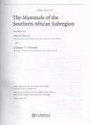 Publisher's note. This comprehensive volume covers all mammals that occur naturally on the African mainland south of the Cunene and Zambezi rivers, and also in the subregion's coastal waters. Extensively revised and updated for the new edition, it now includes the latest data from mammal research in southern Africa along with the radical taxonomic changes across all levels of mammalian classification. Containing contributions from specialists on each mammalian order, each species description has been reviewed by a range of independent and internationally recognised authorities. Along with the latest taxonomic information, the distribution maps and illustrations have been updated and redrawn, several new colour plates have been added, and the whole design has been enhanced to aid access to key information. This is the most comprehensive and up-to-date survey of southern-African mammals and forms an essential reference for zoologists, evolutionary biologists and anyone wanting an overview of the region's wildlife.