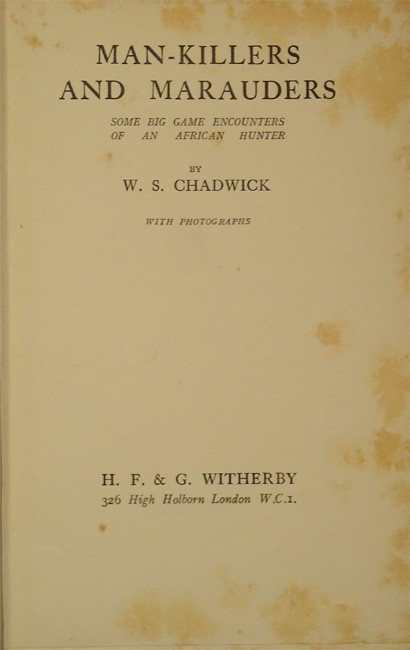 Czech (Dr. Kenneth) An Annotated Bibliography of African Big Game Hunting Books 1785-1999 (New edition 2011), page 58, ‘Quite similar to his Giants of the Forest, this also recounts his hunting adventures after lion in Angola, elephant in the forests of Katanga in the Congo, hippopotamus on the Quanda River, buffalo in northern Rhodesia, and a host of other game in a variety of venues’.