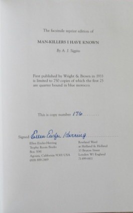 This is a facsimile edition Published by Trophy Room Books and Rowland Ward- Undated. This copy is dated and signed 176 of 750 copies.