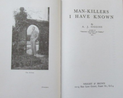 Siggins recounts hunting lions in Rhodesia, both lions and leopards in Mozambique, plus encounters with hippopotamus and crocodiles as well. Near the Rovuma River, elephants and buffalo are bagged. Hunting the big cats, however, captured Siggins' attention the most: "It is a fascinating business to hunt man-killers and in comparison shooting big buck or even elephant is tame sport." He ultimately admits that the mosquito was the biggest man killer in Africa.