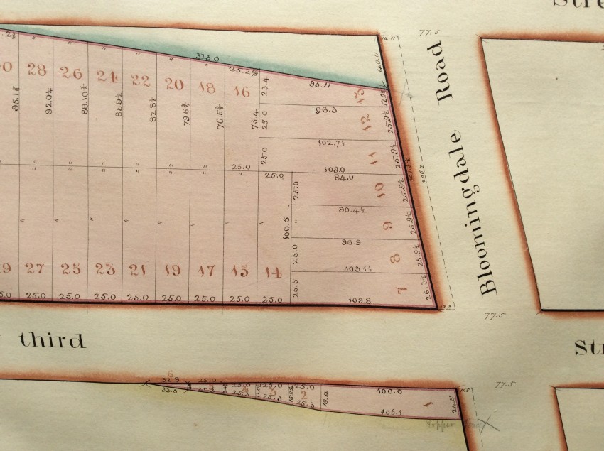 2. 'Map of the Real Estate...', 25 1/2 x 18 5/8 inches, 8th Ave to 'Bloomingdale Road ' [i.e. Broadway], between 54th and 53rd.