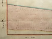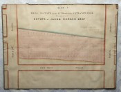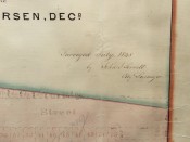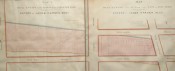 Two original manuscript real estate maps detailing the plots owned by Jacob Harsen's estate, situated between 54th and 53rd street and Broadway and Ninth Avenue, both titled: "Map of the Real Estate in the 12th Ward of the City of New York belonging to the Estate of Jacob Harsen, decd. Surveyed July 1848 by John J. Serrell City Surveyor" wove paper, pen, ink and wash plans, edged with cloth ribbon, backed onto linen, rolled. Both with light creasing, toning, and some light damage with small losses, edging defective (see images).