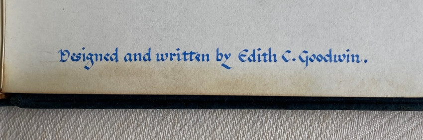 Edith C. Goodwin was the calligrapher responsible for the text in James Guthrie's "The Wild Garden, Verses for Children" - published by Guthrie at his Pear Tree Press in 1924.