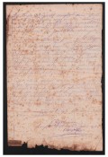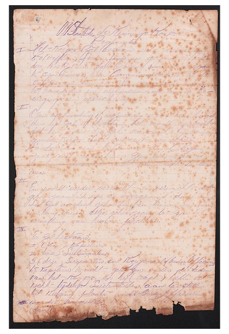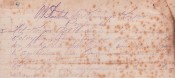 Double sided lined foolscap sheet (320 x 212 mm), written in purple indelible pencil, script faded with age, foxing on both sides, water damaged at the bottom.