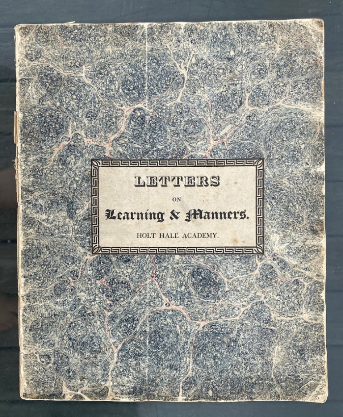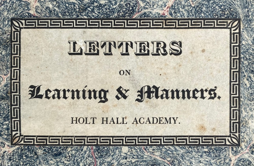 Original marbled paper wrappers, letterpress label to upper cover “Letters / on / Learning & Manners. / Holt Hall Academy’