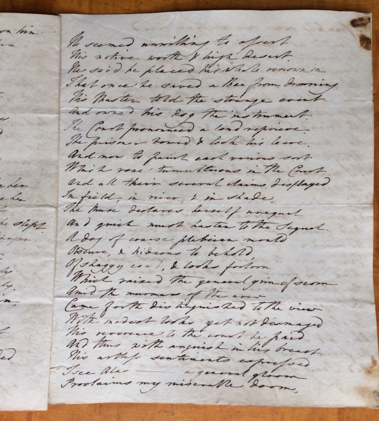 A charming fable, extolling the virtues of all types of dogs: this is apparently an early manuscript fair-copy showing significant differences from the version published by Mrs. Sewell in 1805.