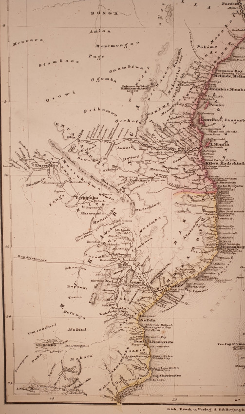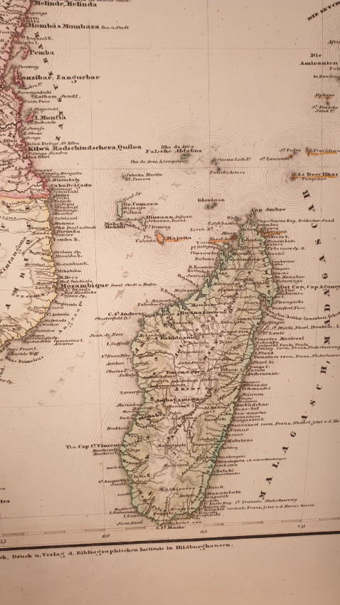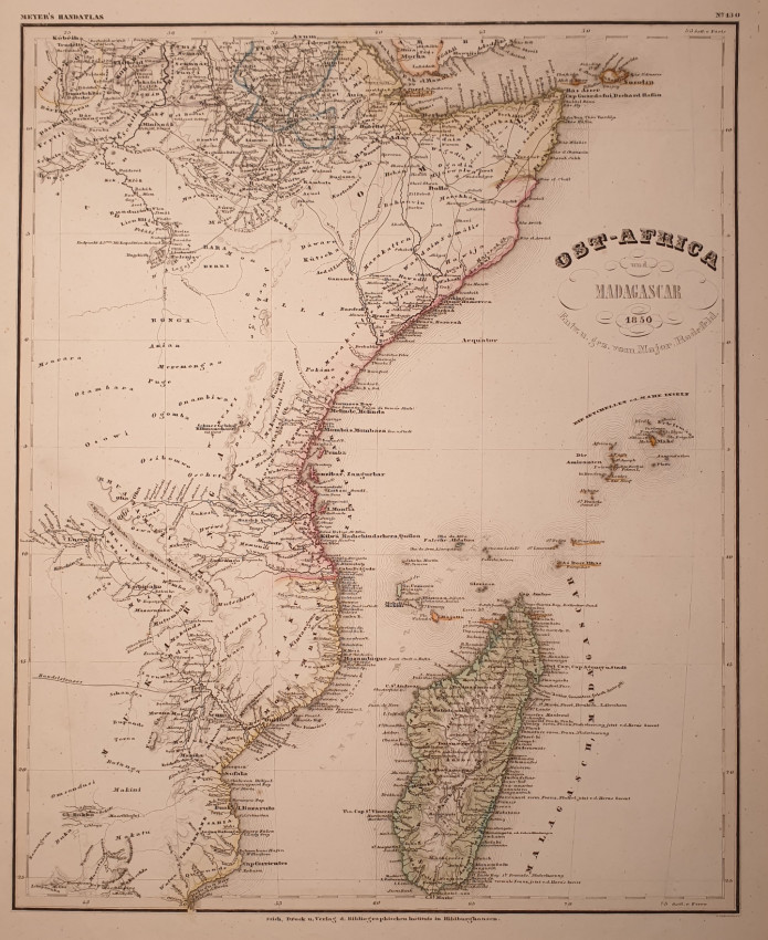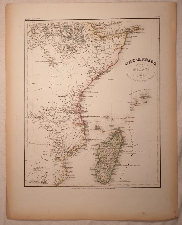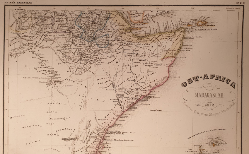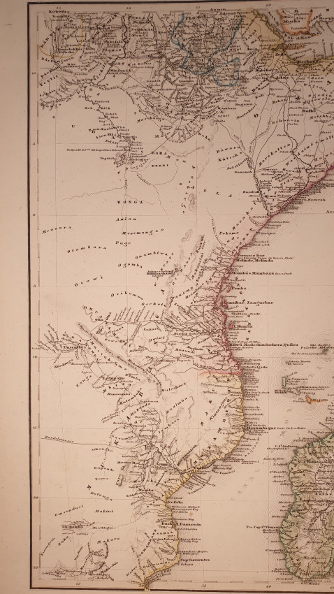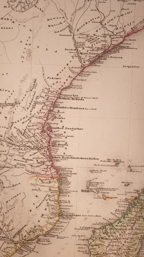 Very beautiful map of East Africa and Madagascar of 1850, coloured by hand, big size.