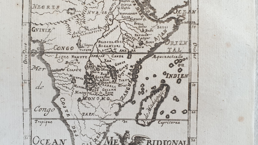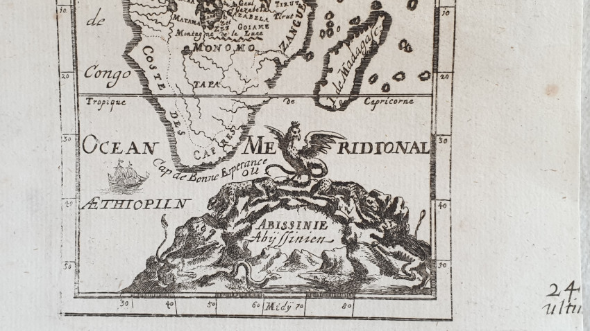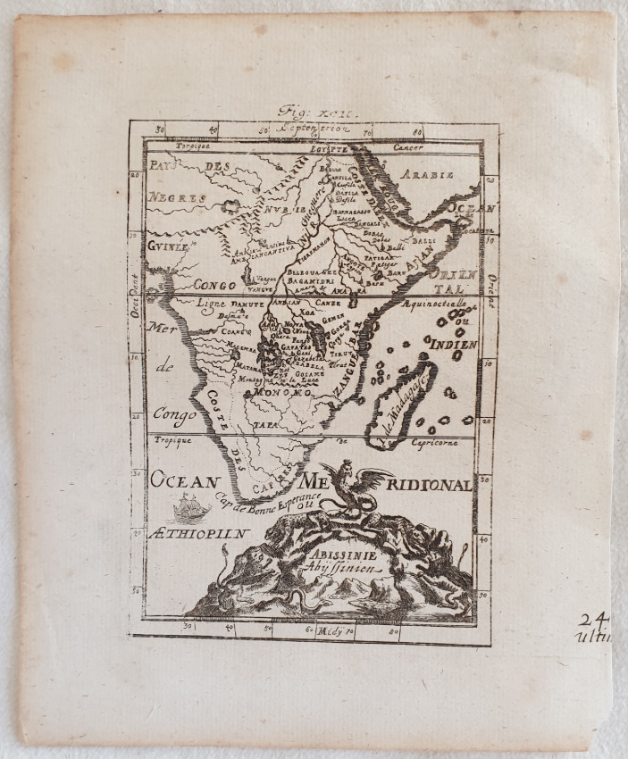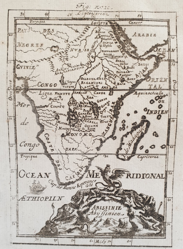 View of South Africa of 1719 by Allain Manesson Mallet (1630-1706). There is also the island of Madagascar and the indication of Cape of Good Hope