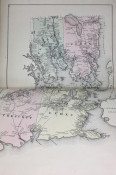 Business references at end. Clean atlas in good or better condition; light wear to county map, a hinges splitting, paper slightly rippled along fore-edge (no dampstaining noted.) board edges rubbed, fraying.