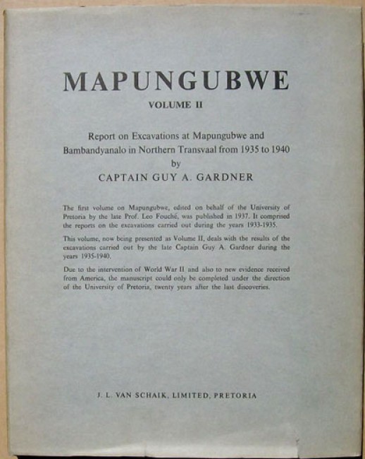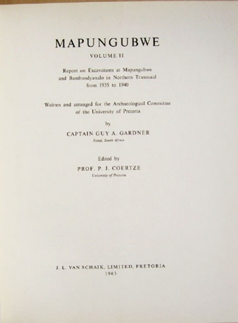 "Report on Excavations at Mapungubwe and Bambandyanalo in the Northern Transvaal from 1935 to 1940," edited by Prof. P.J. Coertze.