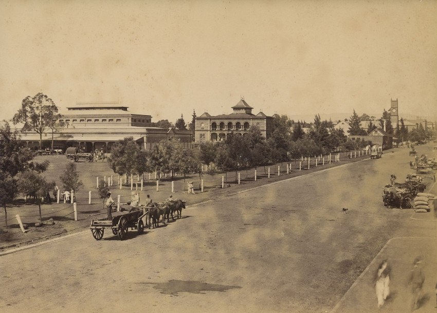 Market Square and Lower End of Church Street, Pietermaritzburg, Natal. c1890. Good contrast and tonality. Photographer: George Washington Wilson. 9.125 x 14.125 in. 23.5 x 36 cm. Image is large than scan.
