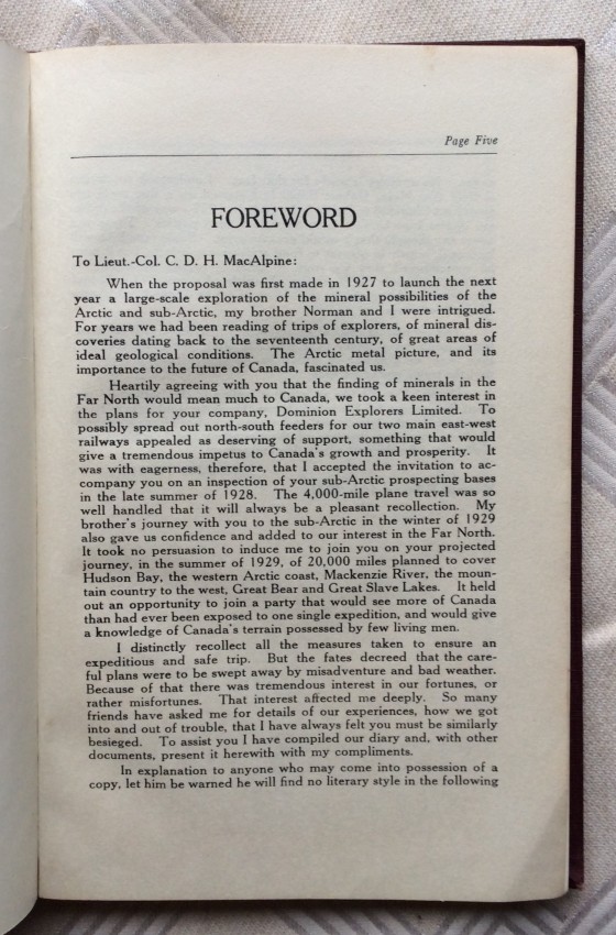 On August 24, 1929, the MacAlpine Aerial Expedition, a party of eight prospectors led by Lt.-Col. C D H MacAlpine – president of a Toronto mining company called Dominion Explorers – set out with two single-motor planes into the Arctic hoping to stake claims in a rich copper find. Their plan was a three-week sweep of the Territories – to the Arctic shore and back. ... things did not go according to plan.
