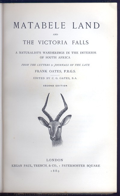 A Naturalist\'s Wanderings in the Interior of Southern Africa, from the letters & journals of the late Frank Oates, F.R.G.S. Edited by C.G. Oates.