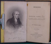 Biography of one of the founders of the Baptist Missionary Society, who went to the India and became proficient in many Eastern languages, into which the Bible was then translated. A number of US educational institutions are named after him.593 pp with frontis. Good condition in blind-stamped original covers, re-backed with original spine laid down; ownership on eps