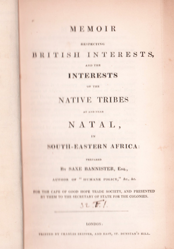 A South African Bibliography vol 1 page125: This appears to be an earlier edition of this Memoir respecting the colonization of Natal. Only one copy listed is private possession, which is this one.