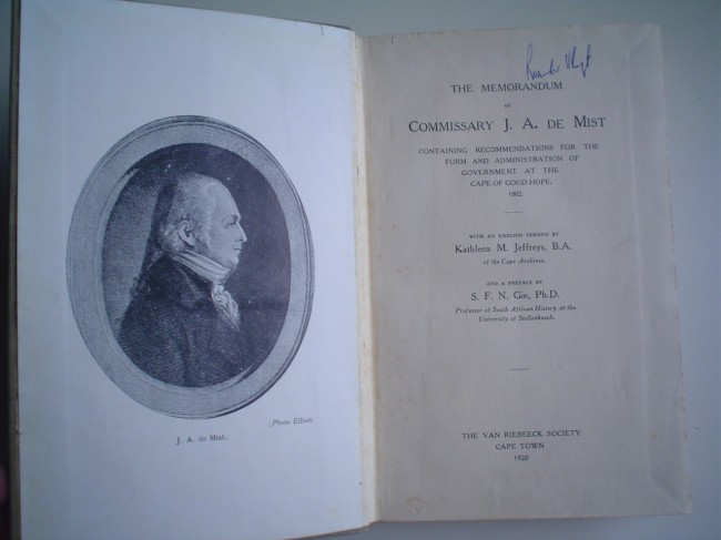 Kathleen Jeffreys, from the Cape Archives, was one of South Africa's best-known authorities on Africana, while S.F. Gie was professor of South African history at the University of Stellenbosch.