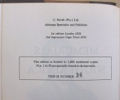 This is the 34th volume in the Africana Collectanea series. Copy number 36 of only 50 copies in the de luxe leather binding The total print run of this edition is 1,000 copies, including the standard edition. Most of the titles in this series are facsimiles of the early first edition Africana rarities, but according to the publisher, this title is NOT a facsimile of the 1820 London edition, but the 2nd impression of the 1820 edition. Original brown leather spine and corners with a green title label on the spine with gilt titling and the publisher's device on the upper board. Frontis portrait of the author,xvii prelims, 289 pages.