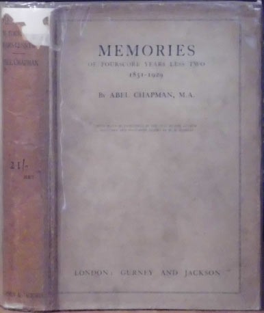 Chapman was a naturalist and hunter, friend of Selous and Millais, as well as the artist W H Riddell. He travelled widely and was the author of a number of ornithological books, as well as two hunting books on his African experiences. Memories contains a number of chapters dealing with North and South African journeys, as well as his trips to Spain and birding in Northumberland.