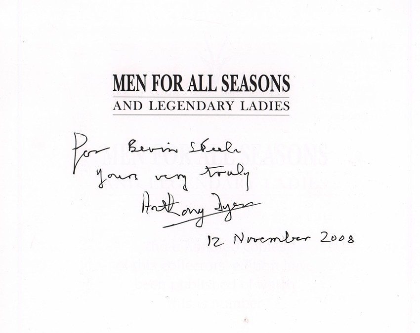 Inscription on the half title page reads: For Bevin Steele Yours very truly, Anthony Dyer 12 November 2008.