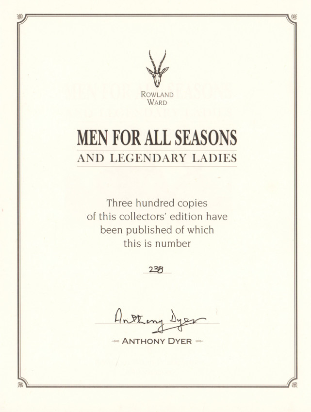 Czech (Kenneth) Bibliography of African Big Game Hunting Books 1785 -1999 page 89: Dyer profiles numerous professional hunters in Kenya, Uganda etc. with accounts of their hunts for a variety of game. Of additional interest is a 41 page appendix of the greatest East African hunters.