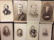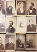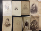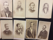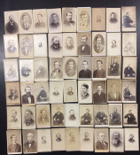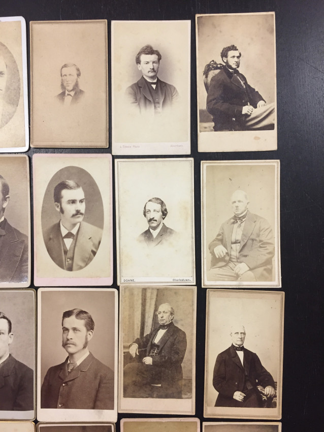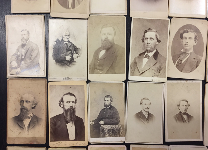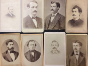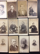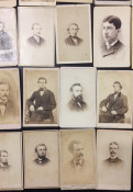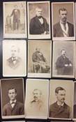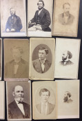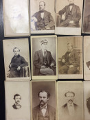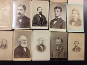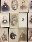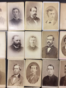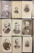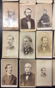 Lot of more than 160 CDVs of men, at least 4 with tax stamps, many impressive beards, one Californian, most American (moderate wear and fading, very good).