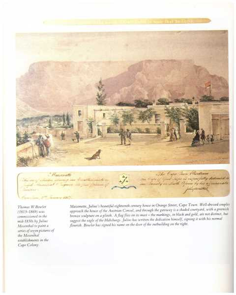 Joseph Mosenthal arrived at the Cape in 1833. He and his brothers rapidly built a trading empire, leading to agricultural advances and the expansion of the family into many areas of commercial activity. They commissioned Thomas Bowler to paint pictures of their establishments around the Cape Colony and reproductions of these are included.