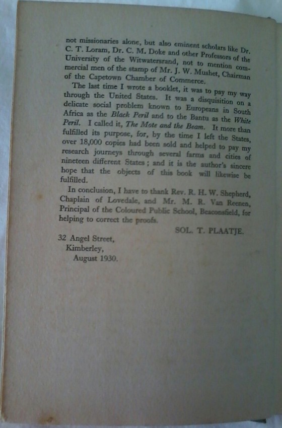 This is the first English novel by an African author. Plaatje was a founding member of the A.N.C. and it's Secretary General in 1912.