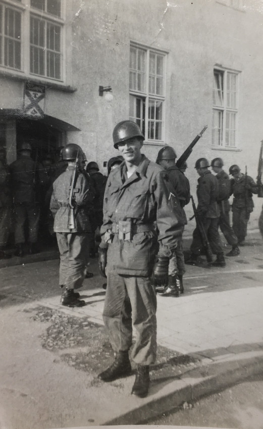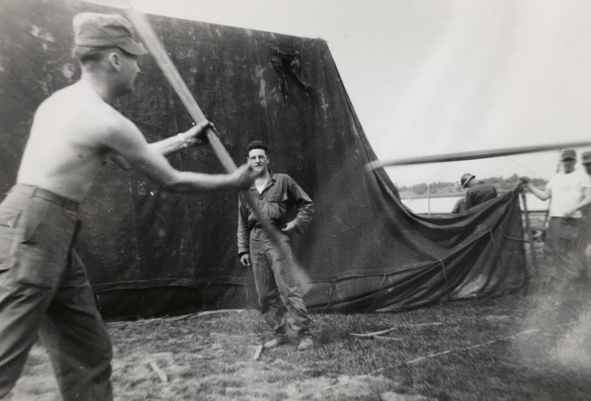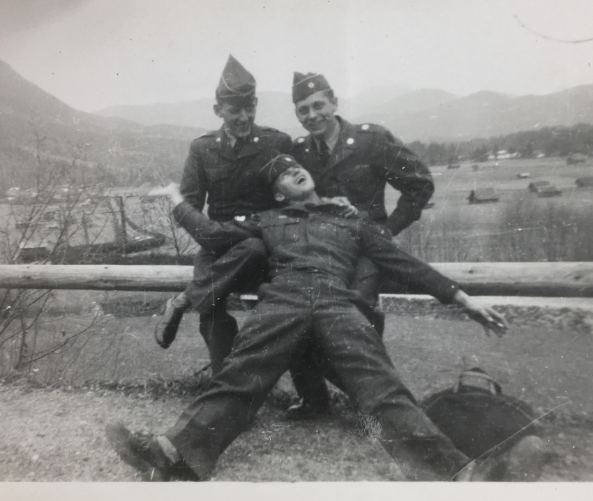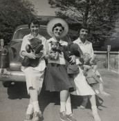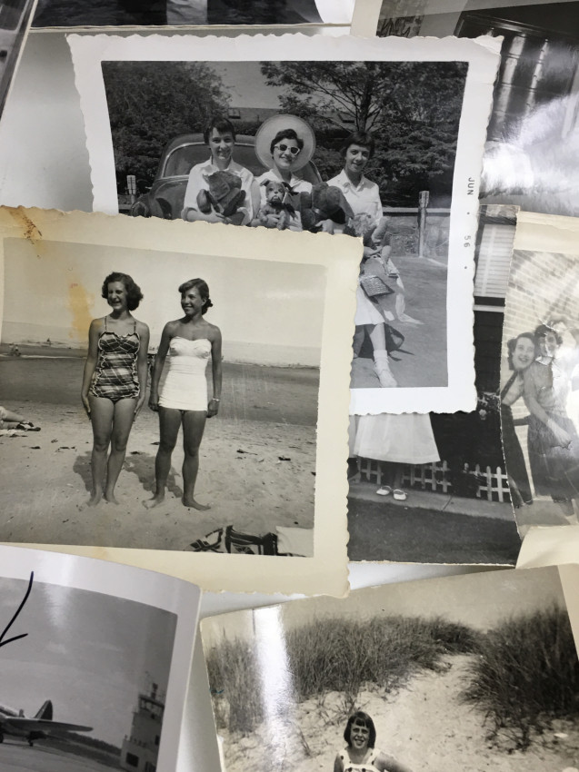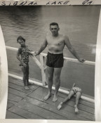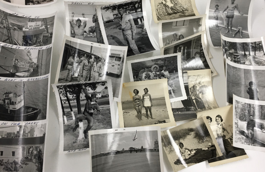 24 snapshots, some military, some family fun, varying sizes, most with writing on fronts and/or backs-- Post War life in America.